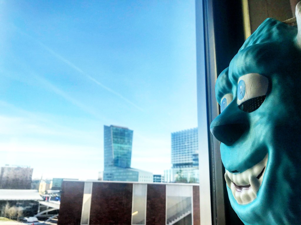 RAISON 1 : les premiers contacts avec la chambre nous ont immédiatement enchantés. Et Dieu sait qu’après de longues semaines sans voyager (notre dernier séjour, suédois, remonte déjà à octobre dernier), nous étions plus qu’impatients de séjourner dans un hôtel digne de ce nom. Bien que très proche de notre domicile, le Mama Shelter lillois a tenu toutes ses promesses et le dépaysement, si furtif soit-il, fut total. Vous n’aurez aucun mal à imaginer que nous nous sommes rués sur les masques, marque de fabrique du Mama, pour prendre moult selfies, tradition oblige. Mention spéciale au lit (grandiose) et à la salle de bain (rose).