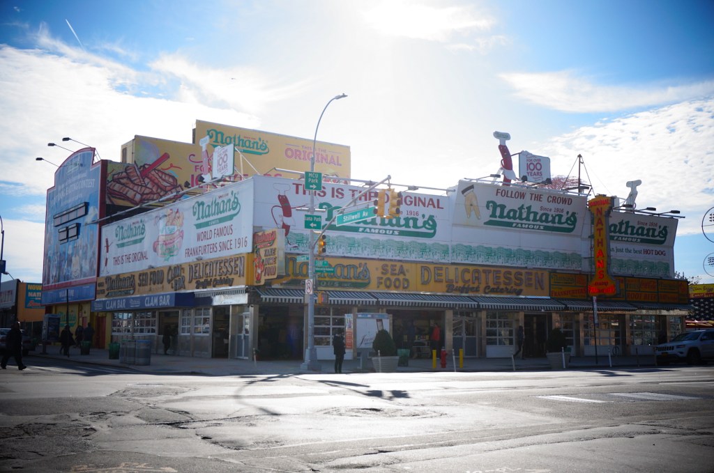 RAISON 1 : commençons par Coney Island, la plage tout au Sud de Brooklyn, et accessoirement mon endroit préféré du monde entier. Sortir du métro sur la Surf avenue. Se diriger immédiatement vers le célébrissime delicatessen Nathan’s Famous. Commander des lemonades (grand format). Foncer sur la digue en bois. Regarder la mer. Tourner la tête et apercevoir les manèges à sensation. Voir les habitants profiter d’une existence paisible. Respirer. Sourire.