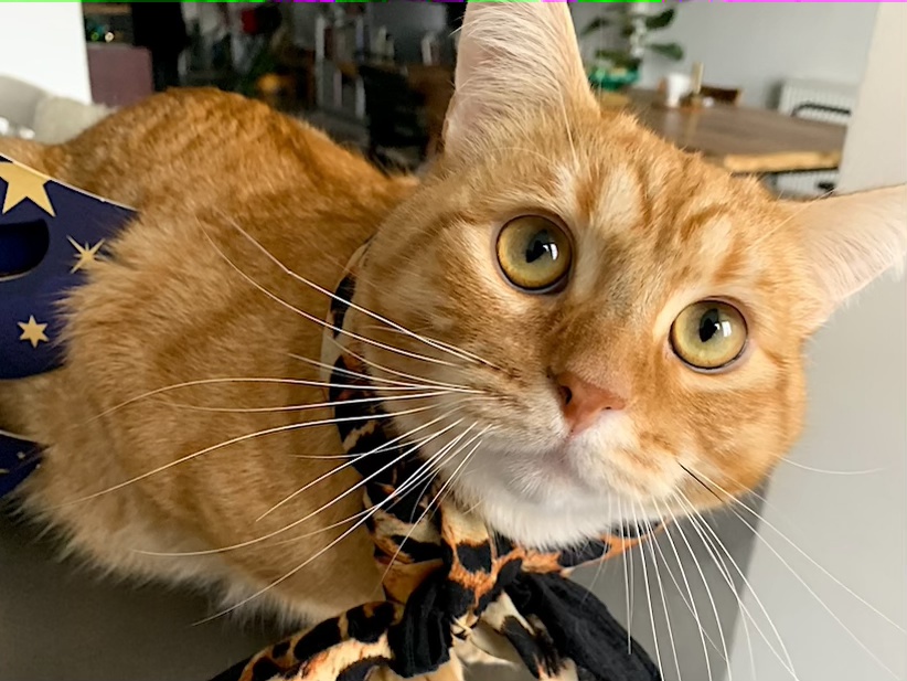 Faire une bonne action et en retirer des bénéfices puissance mille, c’est précisément ce que nous vivons depuis le jour où nous avons adopté Serge à la SPA. Alors que je n’aimais ni la couleur orange ni le prénom Tigrou, je n’ai eu d’autre choix que de réviser mon jugement. Sauf pour le prénom Tigrou ! L’ouragan Serge déborde de malice, d’énergie, d’appétit, d’amour et de bizarrerie. Depuis qu’il a débarqué, j’aime répéter à l’envi qu’il est le soleil de notre foyer.