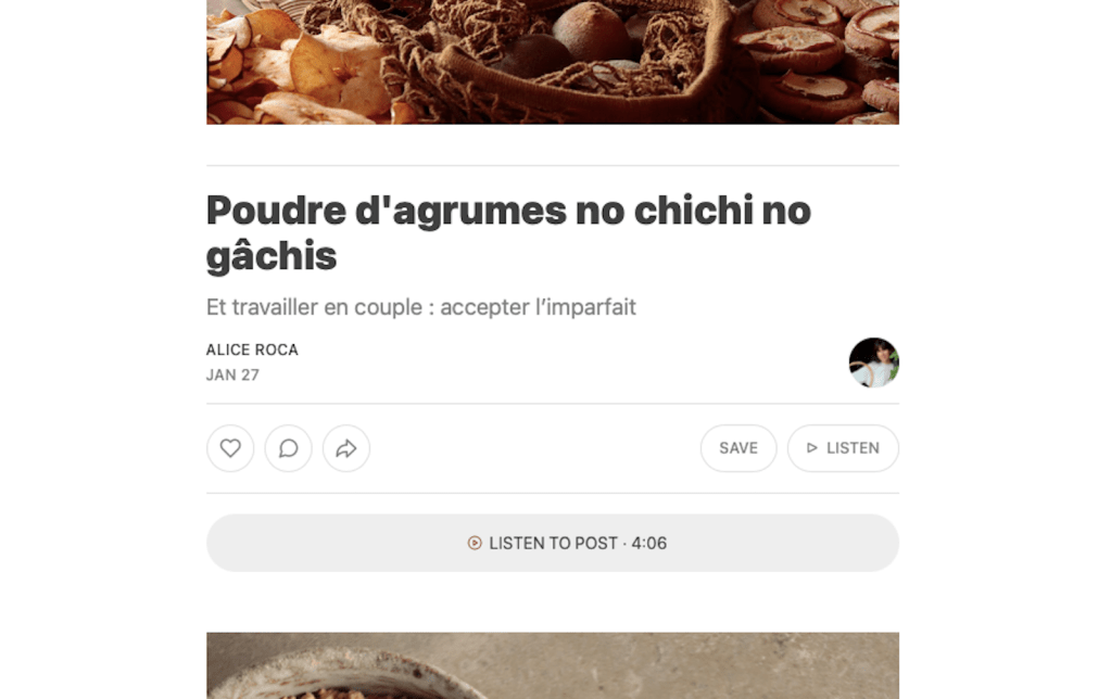 Alerte gourmandise : je vais vous parler de nourriture vivante, saine, colorée, végétarienne et de saison. Alice Roca est une foodista engagée et créative ultra inspirante dont l’univers tout entier me séduit. Cette ancienne designer de mode a su combiner sa passion pour la forme et l’image avec son goût pour les aliments simples de son jardin normand. Au final, son site (une vraie bible du bien manger) regorge de recettes au naturel organisées par saison, mises en valeur avec beaucoup de soin et de délicatesse. Une régalade pour les yeux autant que pour les papilles ! Chaque vendredi, j’attends avec impatience sa newsletter pleine d’idées qui embellissent mon quotidien : recettes, idées repas, livres, inspirations… pour une slow life totalement dans l’air du temps. Pour vous abonner, il vous suffit de cliquer ici.