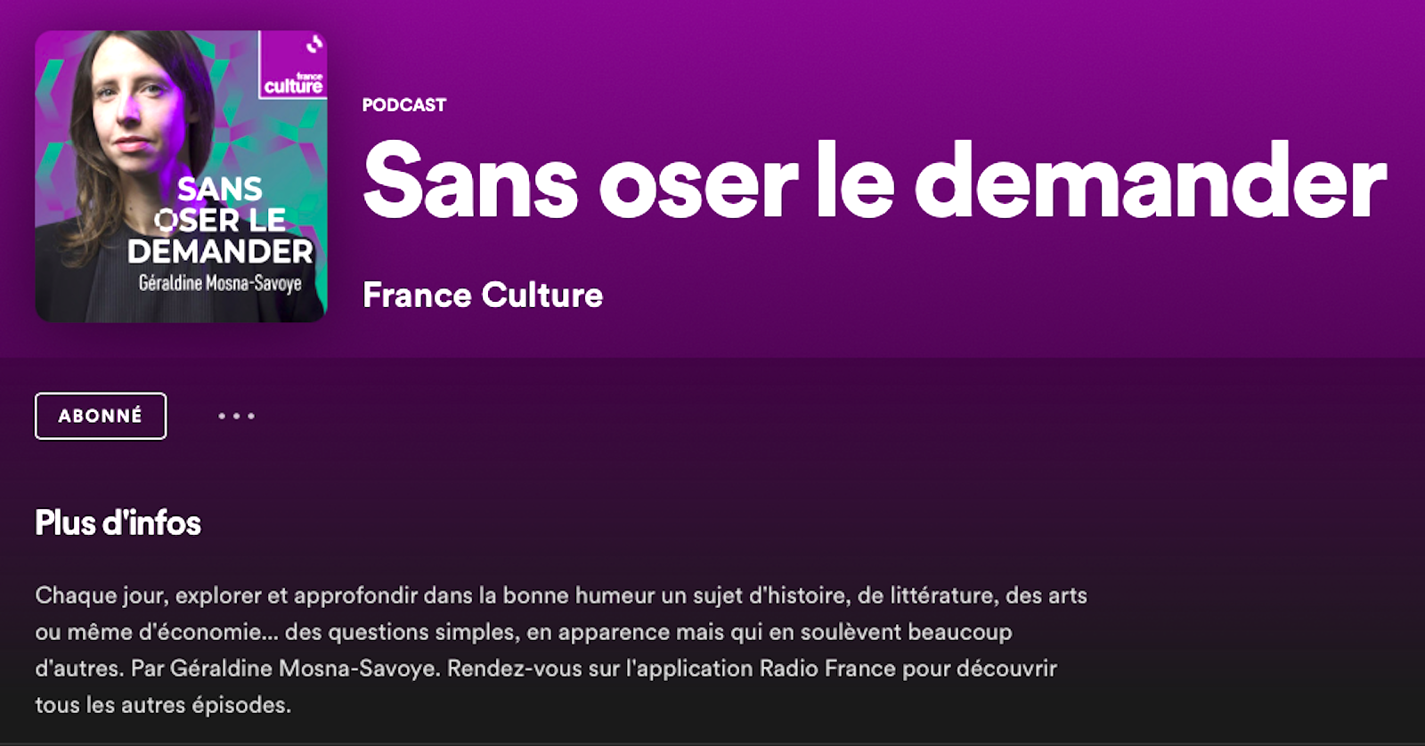 Apprendre en s’amusant, élargir sa culture par la découverte, soulager sa curiosité dans des tas de domaines : c’est la promesse et la prouesse de ce podcast diffusé sur France Culture. Et comme souvent, si quelque chose me plait je le consomme sans modération ! Pour vous mettre l’eau à la bouche, voici en vrac quelques exemples de sujets : Et si vous aimiez la K-pop sans le savoir ? ; A-t-on toujours attendu aux urgences ? ; Art occidental : pourquoi autant de nus, pourquoi autant de culs ? ; Pourquoi prendre des photos au musée ? (quelle belle transition pour la raison suivante)