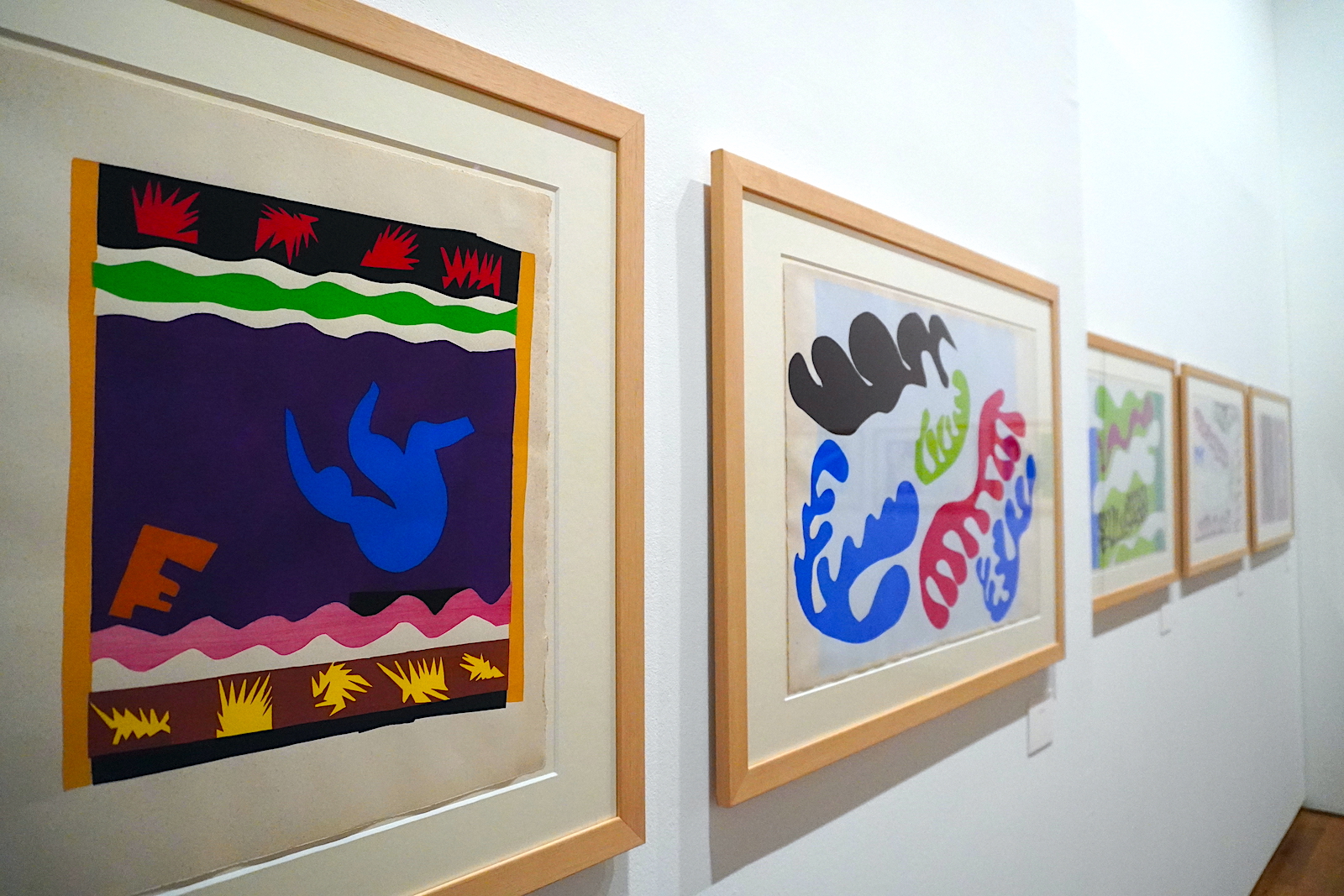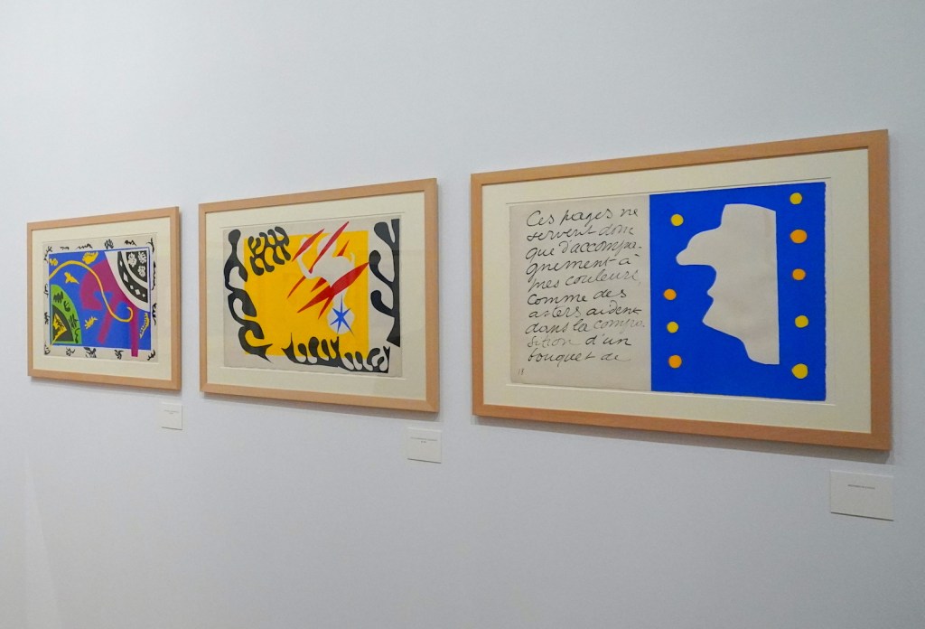 C’est mon coup de cœur de l’accrochage. Quand je pense à Matisse, je me remémore invariablement ses fameuses gouaches découpées. Avec des formes tranchantes, dansantes et modernes, mais aussi par le recours aux couleurs pures, le maître du Fauvisme a su exprimer mouvement et joie de vivre. Si cette technique exigeante prend toute son ampleur dans les années 1930, elle atteint son apogée avec les illustrations du livre « Jazz » (1947), dont les planches sont exposées. La fluidité de ses compositions évoque une danse, comme dans le découpage « Icare », où la figure semble flotter dans un ciel étoilé.