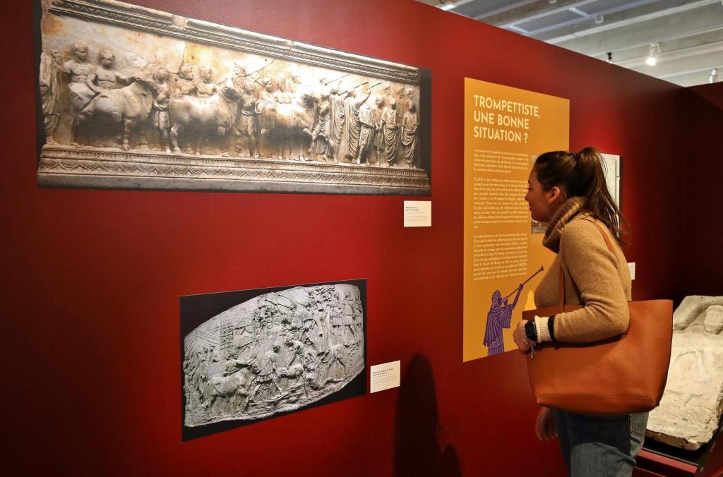 Si vous pensiez que la trompette servait à divertir les romains, détrompez-vous ! D’après l’iconographie romaine, les joueurs de trompette se retrouvaient dans des scènes de procession, de gladiature et sur les monuments funéraires. Dans la majorité des cas, les trompettistes intervenaient dans le contexte militaire. Le rôle tactique du soldat musicien était crucial, car il sonnait les instructions sur le champ de bataille. C’est ce que nous apprend la suite de l’exposition, qui présente également les autres objets exhumés lors de ces fouilles. Et pour connaitre le son de l’instrument, un QR code est mis à disposition. Quelques secondes suffisent pour l’écouter !