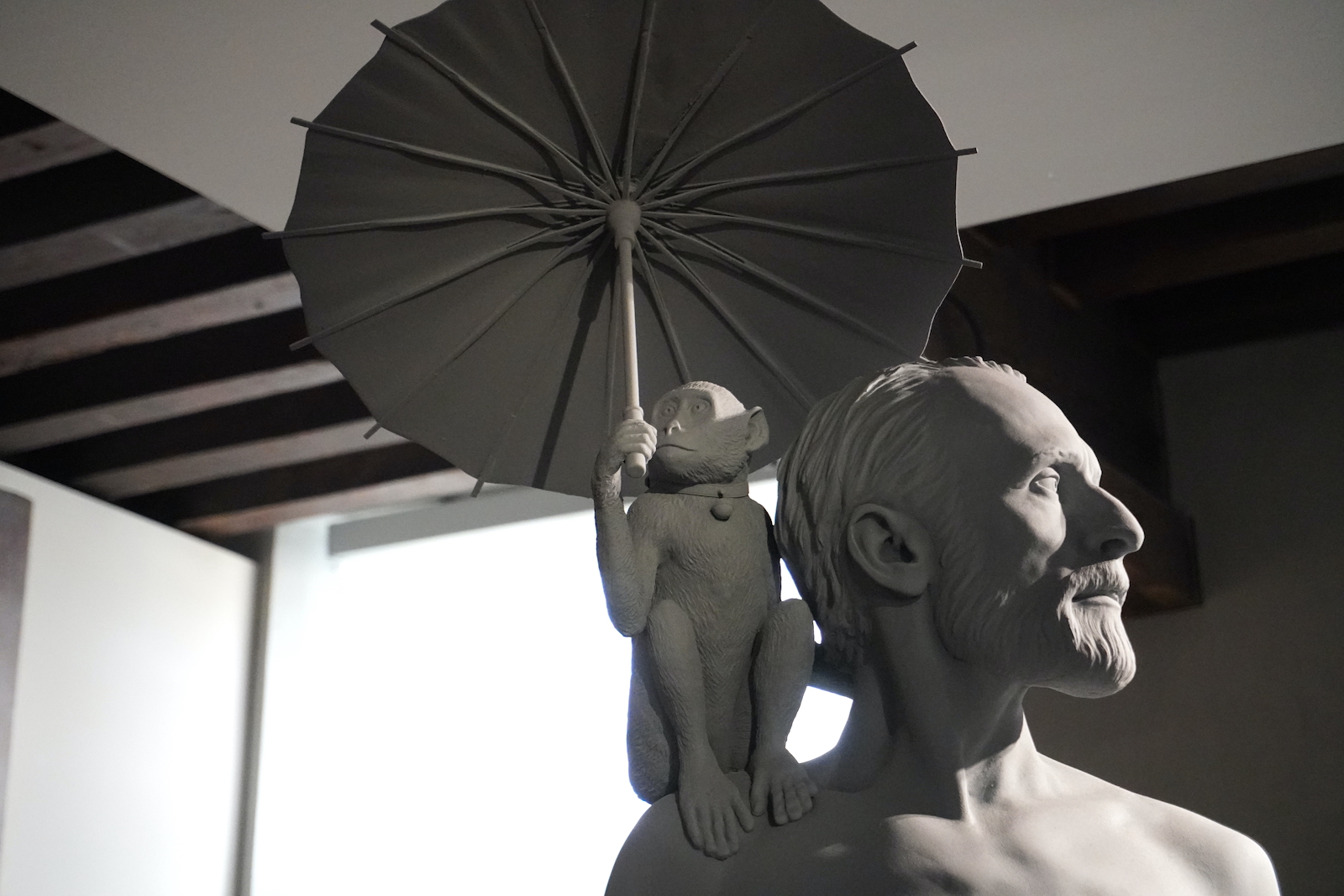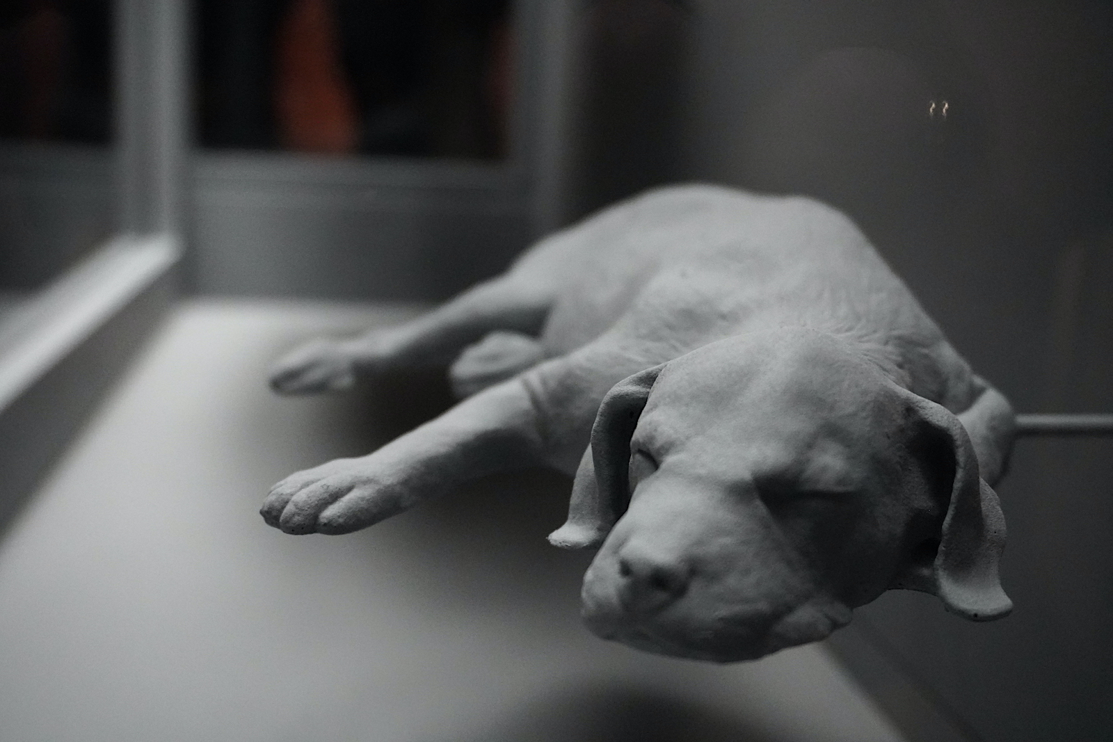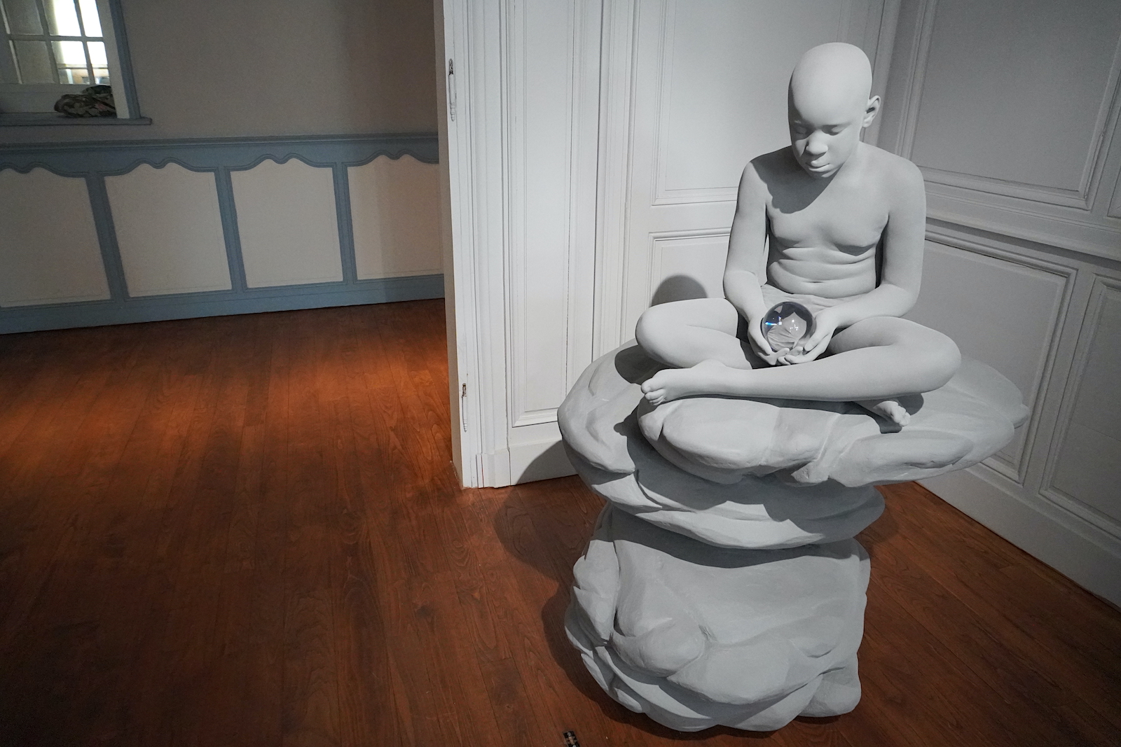 Ce qui interroge immédiatement, c’est la tonalité sourde adoptée par l’artiste : le gris. Un choix assumé dont Hans Op de Beeck nous a livré la raison : « En enlevant la couleur, on peut plonger dans l’essence de l’objet, qu’il soit un portrait ou un paysage. Mon travail n’est pas une simulation mais une évocation que j’utilise pour créer des émotions. Et avec ces émotions, je double ou triple l’intensité de la vie. » Des propos qui m’ont forcément chamboulée, moi qui ne sais souvent que faire de toutes ces émotions qui m’assaillent en permanence. Résonance, vous avez dit résonance ? Le titre de cette exposition est décidément bien choisi.