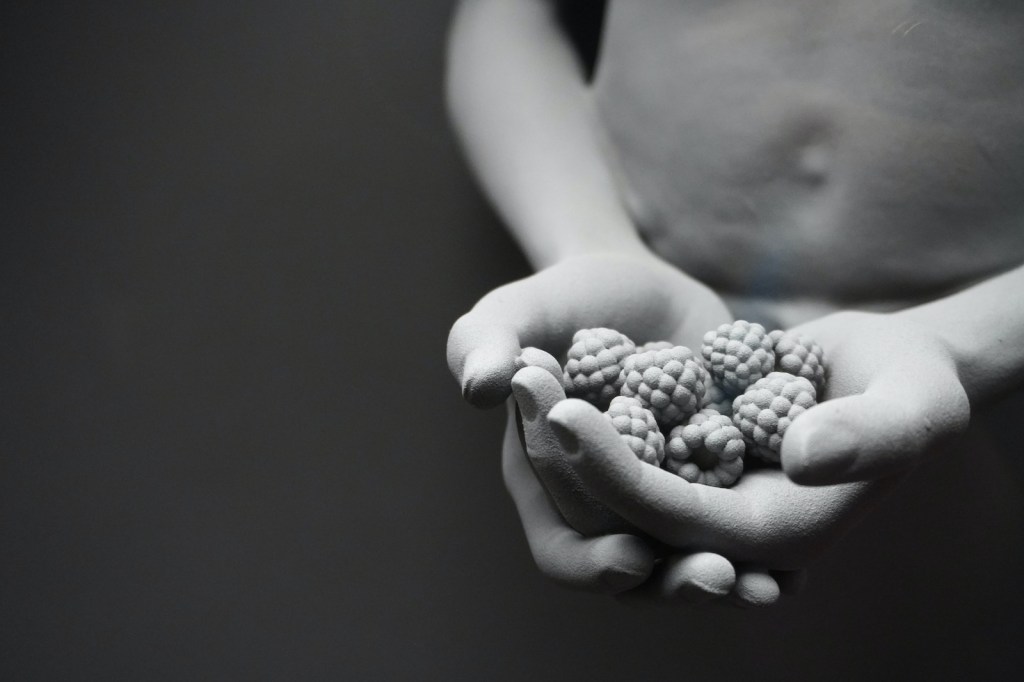 C’est avec une infinie délicatesse et beaucoup d’humilité que l’artiste nous a expliqué son travail. Connu et célébré dans le monde entier (sa dernière exposition en Finlande a attiré par moins de 168 000 visiteurs), il reste en lui une part de l’enfant calme et introverti qui s’évadait dans le dessin et adorait cueillir des mûres (un thème récurrent dans son univers). « J’aime mixer la banalité avec la richesse. Une tasse de café peut ainsi avoir autant de valeur qu’un bijou, et c’est ce qui créé la valeur de la vie quotidienne », nous a-t-il expliqué. La valeur de la vie qui se révèle notamment avec une nature morte extrêmement impressionnante de par ses dimensions. « C’est le monde disproportionné que je vois quand je rêve », sourit-il. En se saisissant du Memento Mori (littéralement « Souviens-toi que tu vas mourir »), l’artiste célèbre plus que jamais la vie. « Certains me pensent mélancolique, mais c’est tout le contraire. »