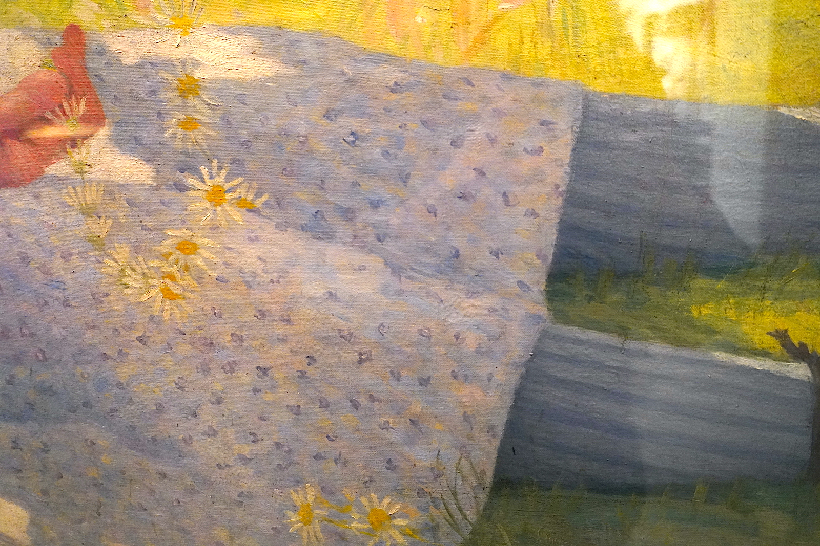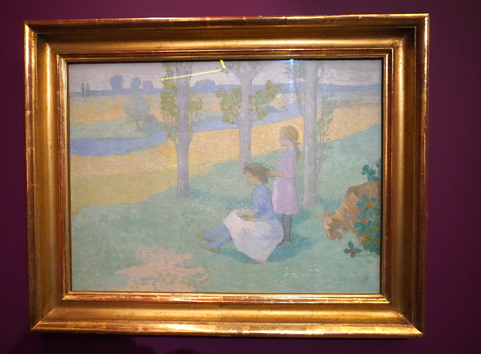 La grande surprise de l’exposition nous saisit dès l’entrée, puisque tout débute avec les peintures d’Aristide Maillol. Eh non, il n’était pas seulement sculpteur ! Ses nombreux carnets de croquis exposés laissent d’ailleurs entrevoir son trait, délicat et puissant. J’ai été particulièrement sensible à la lumière émanant de ses toiles, à la subtilité de ses motifs, à la douceur des paysages et surtout à ces femmes magnifiées. Toutes de profil. Il s’illustrera ensuite dans la tapisserie et la céramique, avant de trouver sa vocation dans la statuaire.