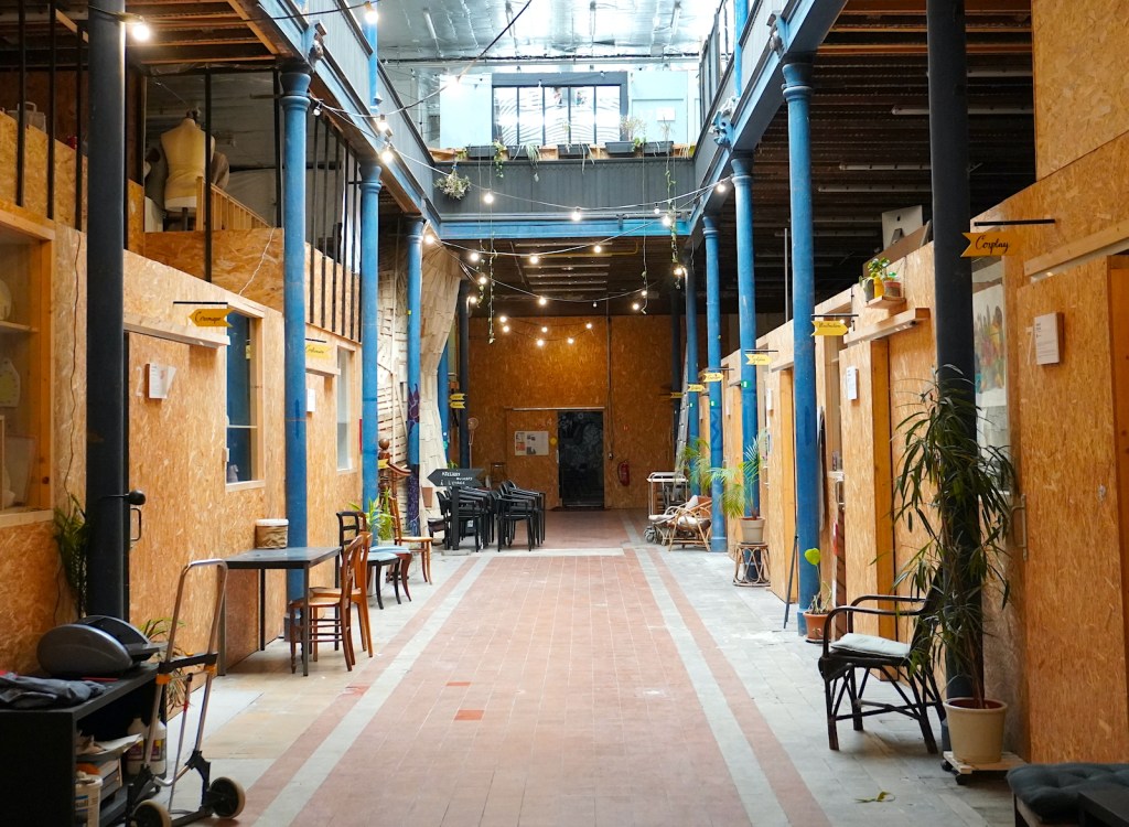 Premier constat : il y a une âme dans ce bâtiment. Authentiques, atypiques, artistiques… les adjectifs sont légion pour décrire ces ateliers. La trentaine d’occupants officie dans des disciplines allant de la céramique à la fabrication de bijoux, de la couture au tatouage, de la sculpture à la mode (et j’en passe). Jouret, c’est une ambiance joyeusement foutraque sur deux niveaux, une atmosphère de folie douce et créative omniprésente, des œuvres à perte de vue et une démarche éco friendly. En somme, un cocktail de créativité, d’authenticité et de patrimoine.