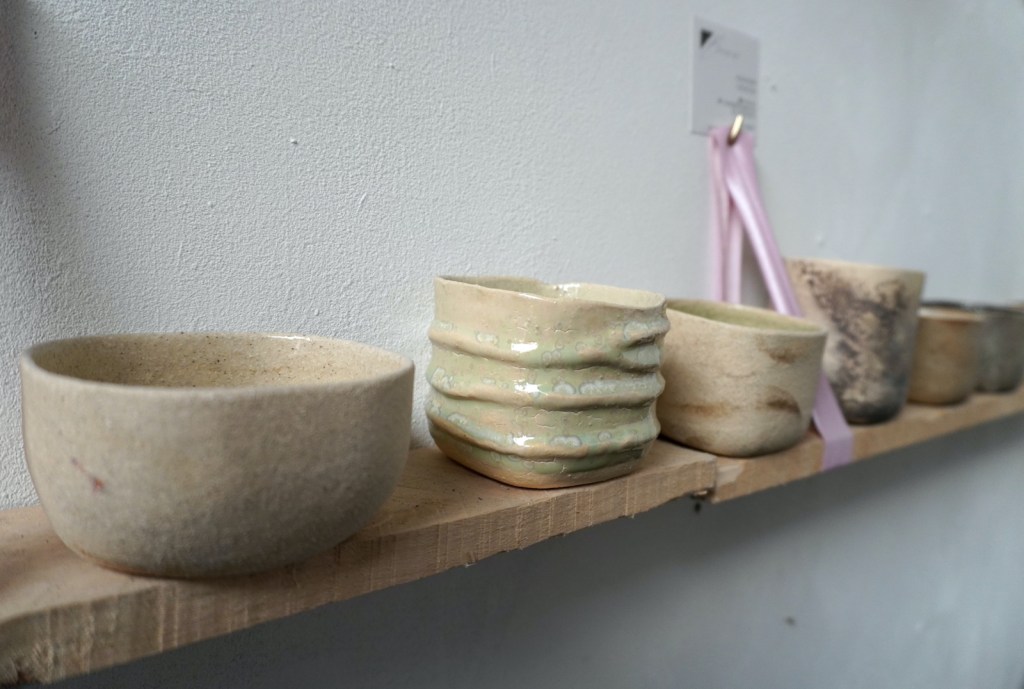 Après nous avoir offert un café, Murielle Bonin, notre hôtesse du jour, nous a expliqué son parcours. Quel meilleur moyen que ce format pour en savoir plus sur un artiste, ses inspirations et son travail ? La céramiste a intégré les ateliers il y a trois ans : « Ici j’expérimente, je recherche, je structure mes créations sans le moindre parasitage. »