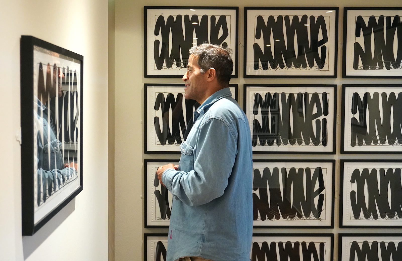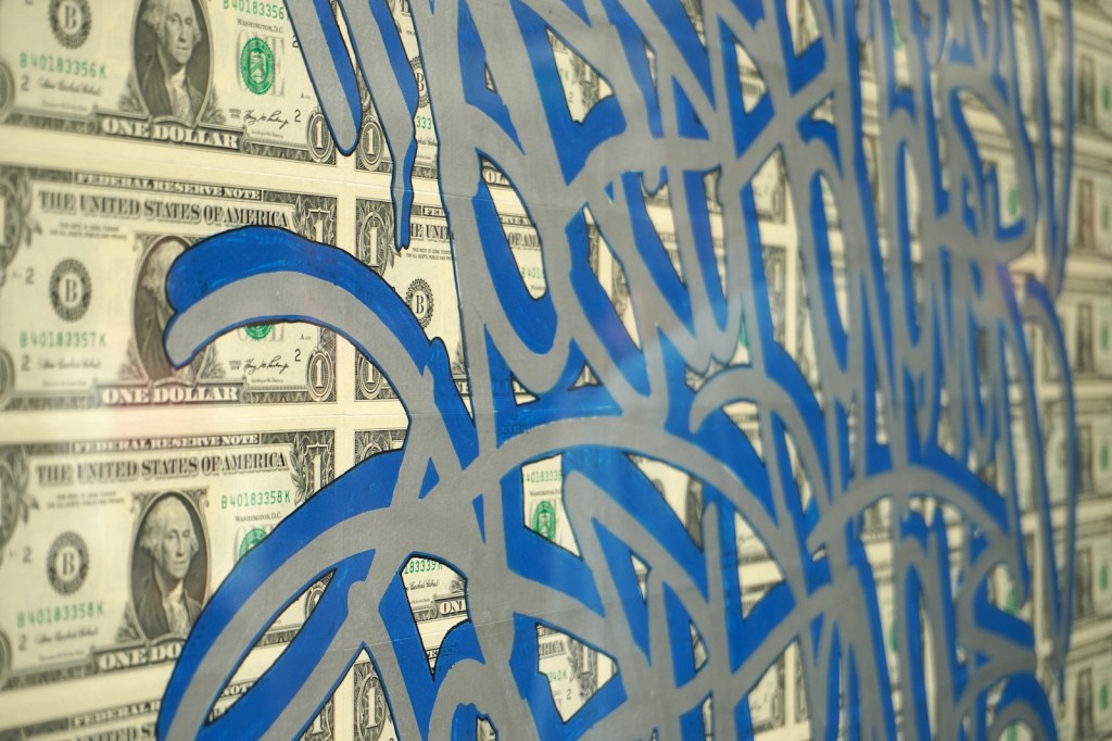 À force de poser son blaze sur les murs du monde entier, JonOne a fini par en faire son motif de prédilection. John Andrew Perello nous a confié que c’est suite à une rupture amoureuse qu’il s’est mis à signer JonOne. En préservant son anonymat tout en assurant sa notoriété, le pseudo fait partie intégrante du street art. L’artiste s’en amuse forcément et, à la façon d’un calligraphe, propose une série d’œuvres dans lesquelles son nom d’artiste devient motif.