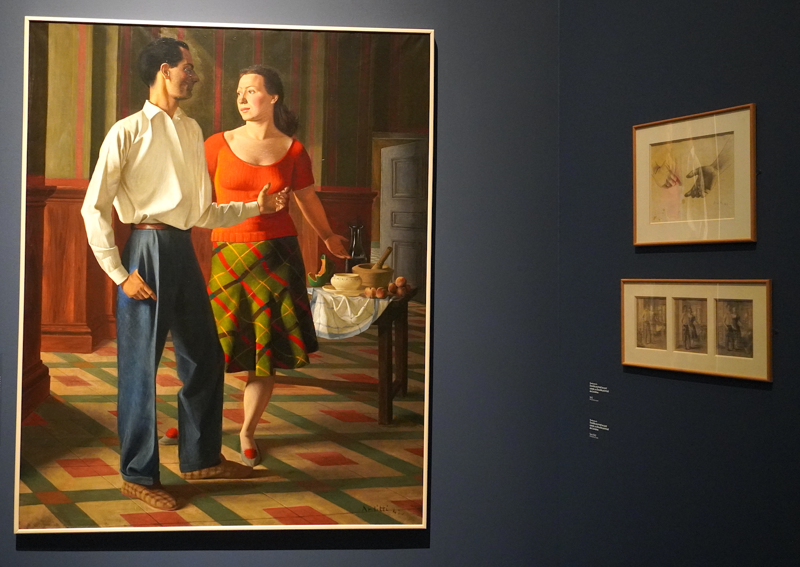 L’œuvre d’Arditi se mérite, se regarde, se scrute, se contemple. Les compositions de ses toiles, de prime abord classiques, donnent à voir bien plus qu’il n’y parait à celui qui veut bien s’y attarder. Scène dans la scène, arrière-plan chargé de sens, nature morte derrière le portrait d’un couple lumineux, boucher devant son étal… tout évoque une certaine théâtralité. Telles des saynètes, ses tableaux rendent hommage à l’homme et à ce qu’il a de plus précieux : la vie.