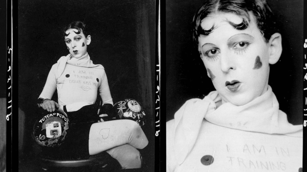 Née Lucy Schwob à Nantes en 1894, Claude Cahun a consacré sa vie aux questions de l’identité et de la représentation de soi. Des thèmes considérablement exploités à travers ses autoportraits où elle apparait grimée et déguisée. Pendant près de quarante ans, elle multipliera les images d’elle-même pour atteindre ce qu’elle appelle l’indéfinition sexuelle. Proche des surréalistes, elle s’illustrera également avec ses écrits mêlant poésie et activisme. En 1939, en exil avec sa compagne sur l’île de Jersey, elle entre dans la Résistance et échappe de peu à l’exécution. Elle y décèdera en 1954… mais ce n’est que 40 ans plus tard que son œuvre sera exhumée et adoubée à sa juste valeur.